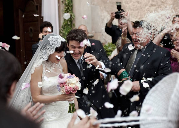 親族や友人たちの祝福の歓声を浴びたふたりは、無上の幸せを噛み締めるのだった。