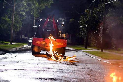 それは、1台のレースカーのクラッシュを皮切りに、後続の車が次々に巻き込まれていき、破壊された車体の残骸やタイヤがスタンド席に襲いかかるというものだった。
