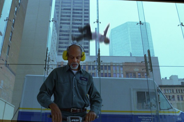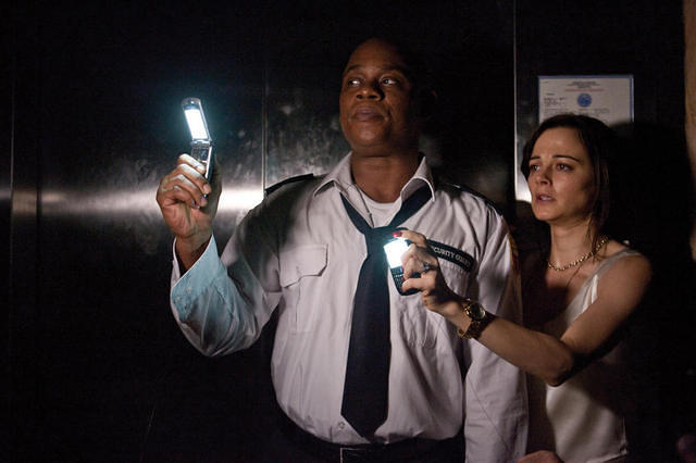 状況に気が付いた警備室の警備員ラスティグ(マット・クレイヴン)とラミレス(ジェイコブ・バルガス)は整備担当のドワイトに故障したエレベーターの確認に向かわせる。