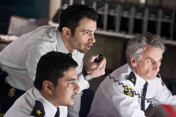 その状況を監視カメラのモニターで見たラスティグは警察に連絡。無線を聞いたボーデンは警備室に向かい、中の5人に落ち着くように話す。