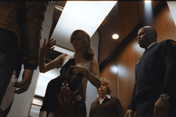 その頃、エレベーターの一基が突然停止し、セールスマン風の男(ジェフリー・エアンド)、老女(ジェニー・オハラ)、警備員のラーソン(ボキーム・ウッドバイン)、身なりのいい若い女(ボヤナ・ノヴァコヴィッチ)、そして整備工の若者(ローガン・マーシャル=グリーン)の5人が閉じ込められた。