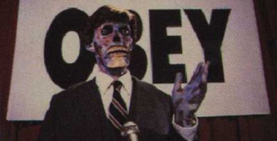 サングラスをかけると人の顔がガイコツみたいな宇宙人になったり、街中にあるポスターや標識、雑誌なんかもサングラスをかけると、「考えるな」、「消費しろ」、「結婚して子供を生め」、「お上には逆らうな」、「テレビを見ろ」、「眠っていろ」ってサブリミナル的に書いてあるのが見えるようになります。